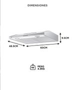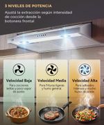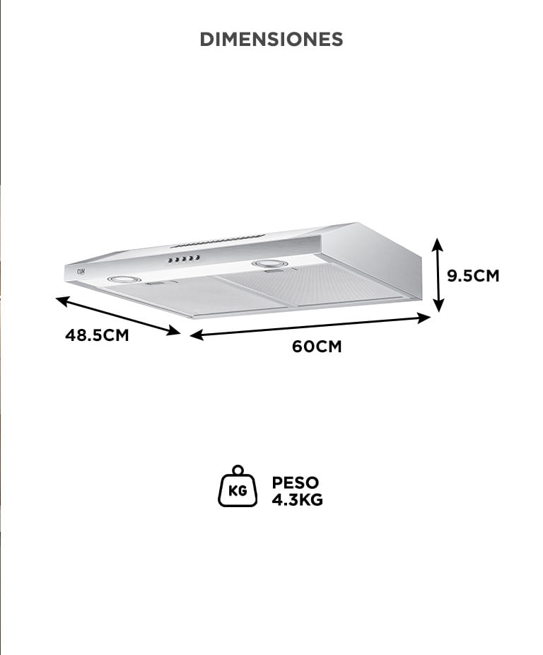 Incluye 2 filtros de aluminio de 3 capas lavables y filtro de carbón para uso con o sin salida exterior.