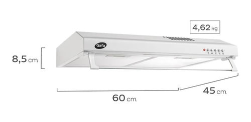 El Purificador Extractor de aire GAFA AJSR24M5ARW, con diseño en color blanco, cuenta con 3 velocidades de potencia de extracción.