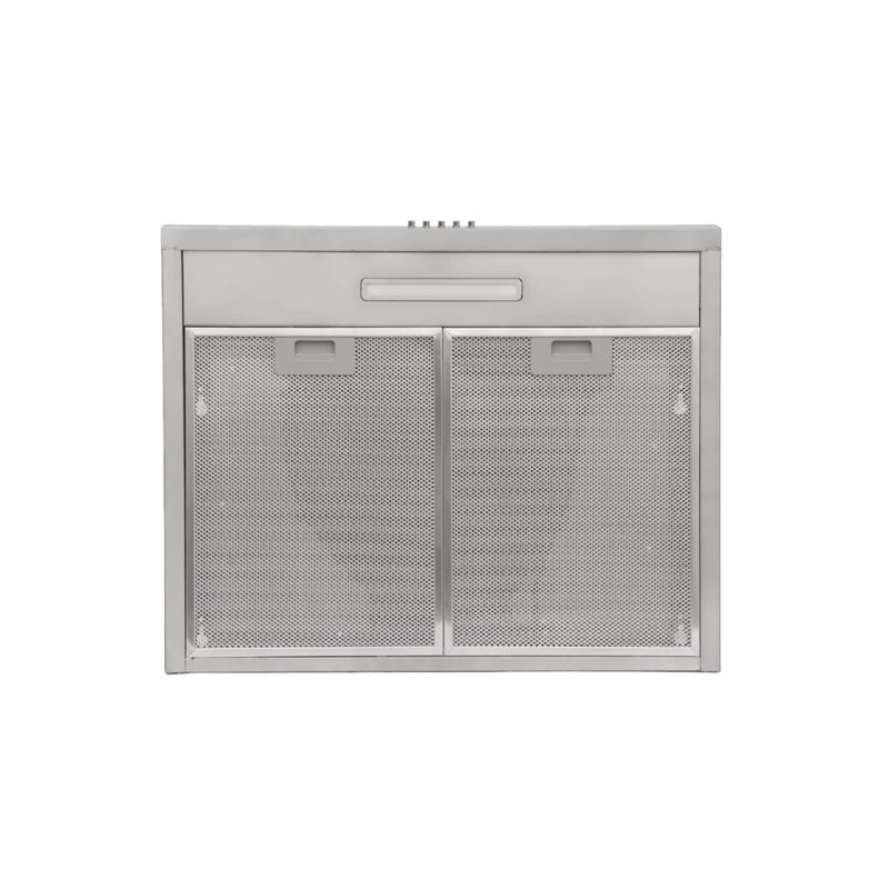 Extractor purificador de cocina Kanji (código KJH-AIREXTPURI120I), con motor de 120W, 3 velocidades y luz LED integrada. Tiene doble filtro de aluminio y se puede instalar tanto con salida al exterior como recirculando. Incluye garantía de 1 año.
