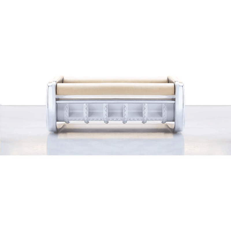 El accesorio de ravioli de Pastalinda, te permite fabricar planchas de ravioles de manera fácil y rápida. Tendrán un ancho de 20cm, equivalente a 5 ravioles de 3,6 cm, por el largo de la masa que utilices.