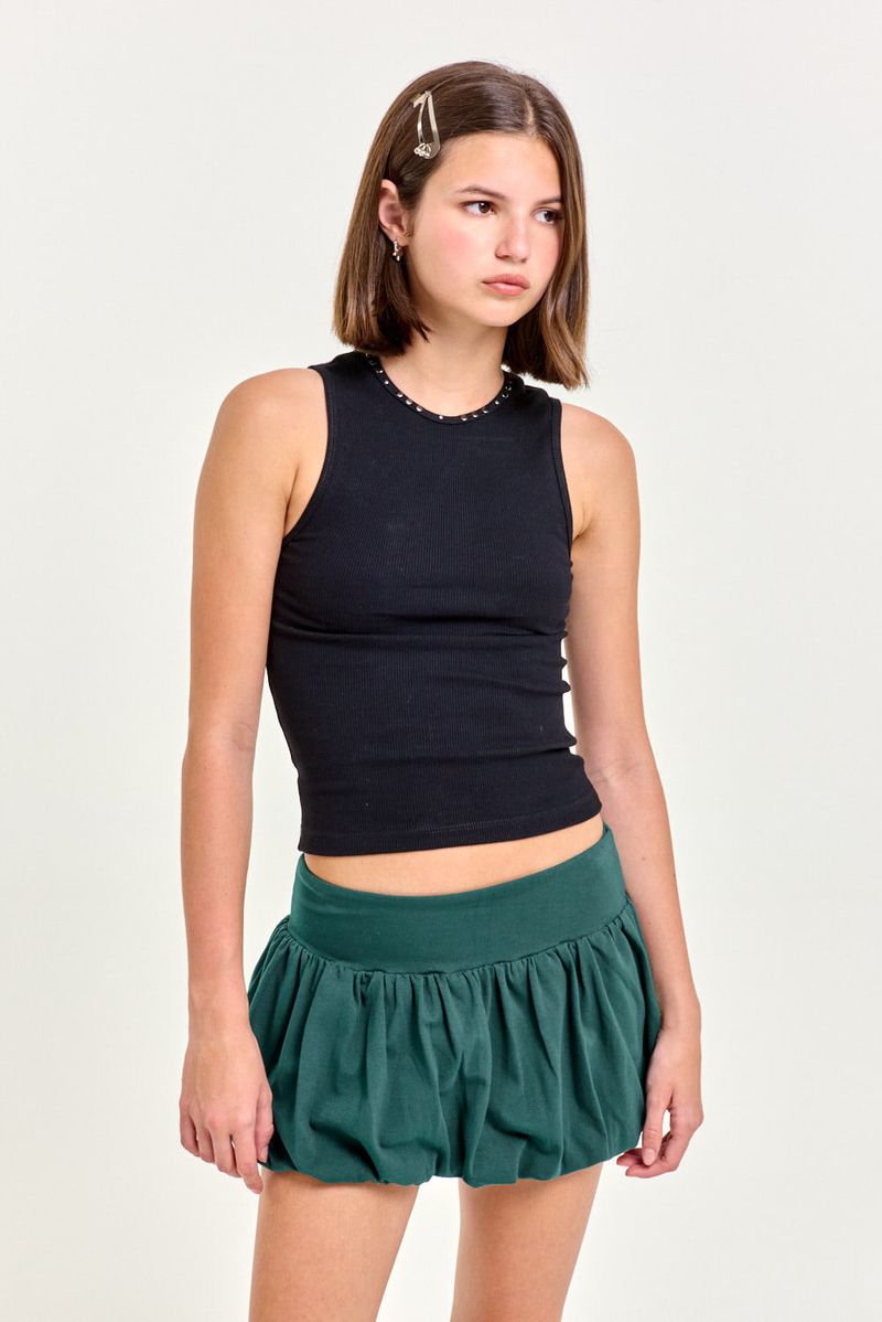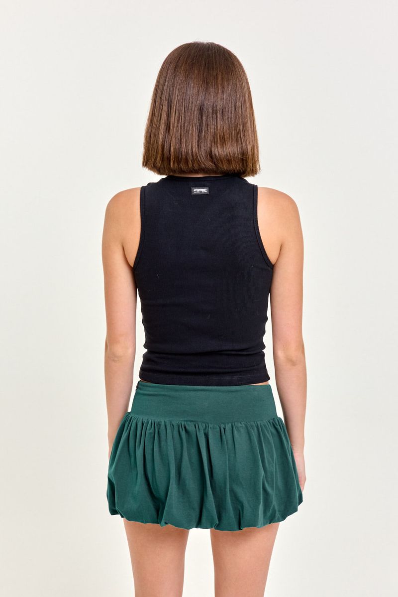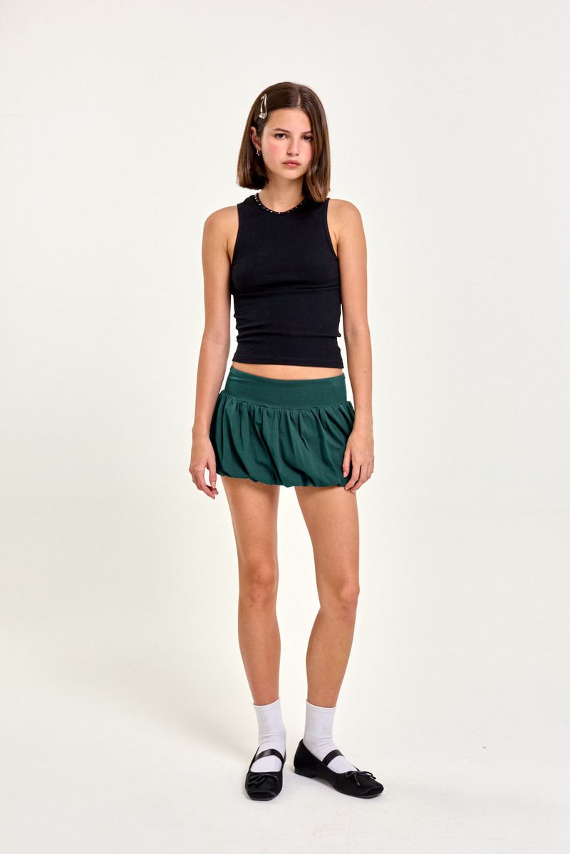Falda de algodón con lycra tipo balloon, con forreria de tela base y cintura ancha de tela base. Lleva grifa institucional.
