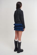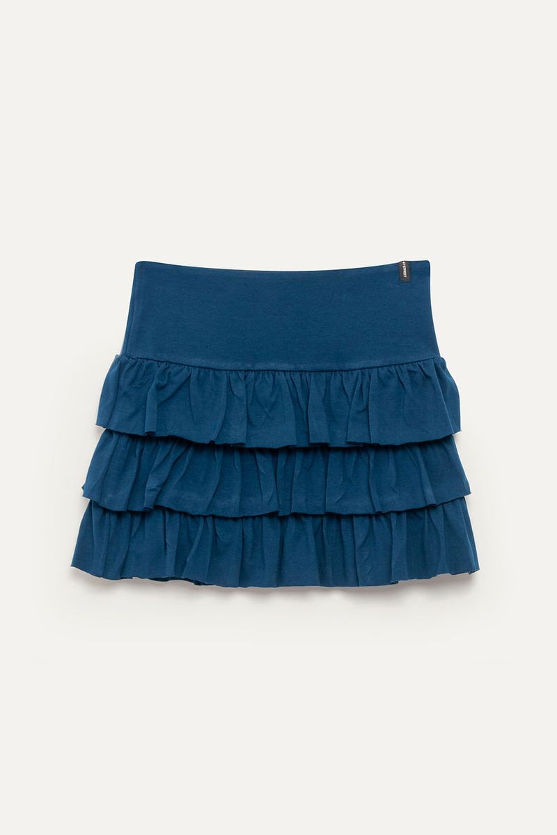 Falda corta de tres volados al corte, de algodón con lycra liviano. Con cintura ancha de la misma tela. Grifa Institucional.