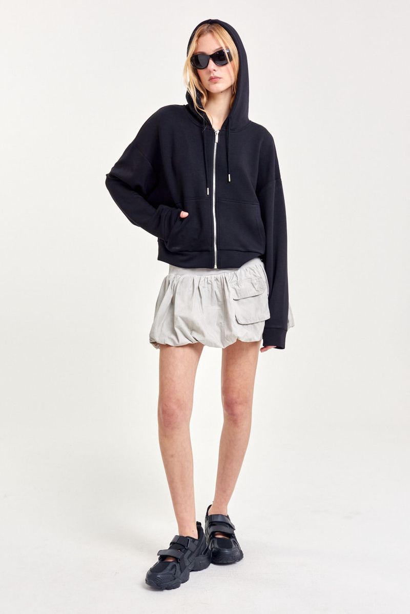 Falda corta tipo balloon con terminación washed y cintura de algodón, con bolsillo delantero con tapa y trasero con botón metálico, además de accesorios personalizados de la marca. Perfecta para un look alternativo con buzos o camperas oversize.