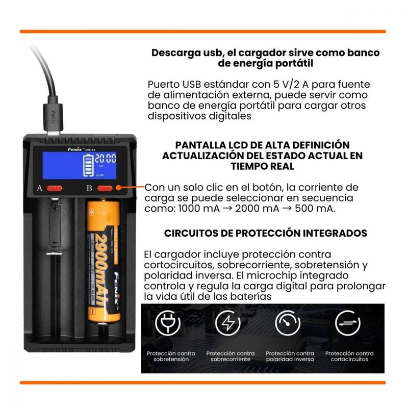 Compatible con diferentes tipos y tamaños de batería.