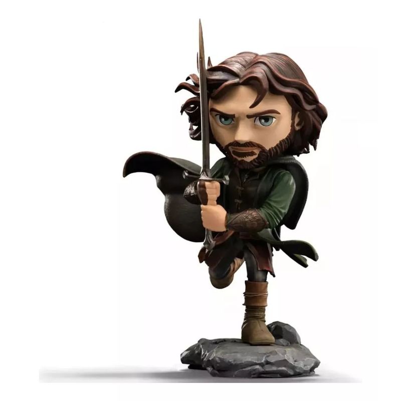 Corriendo a largos pasos por la Tierra Media, el intrépido guerrero de cabello castaño y ojos azules trae en sus manos la poderosa espada Andúril, forjada por un famoso enano en Rivendel, empuña la espada listo para luchar contra las fuerzas del mal de Sauron y conquistar su destino en la historia junto a los reyes de Gondor. Ampliando su estilizada línea MiniCo inspirada en la obra maestra creada por J. R. R. Tolkien y magistralmente adaptada a la pantalla grande en una trilogía cinematográfica dirigida por Peter Jackson, Iron Studios presenta con orgullo la estatua "Aragorn - El Señor de los Anillos - MiniCo", una de las Personajes principales de una de las obras de ficción y fantasía más importantes de la literatura.