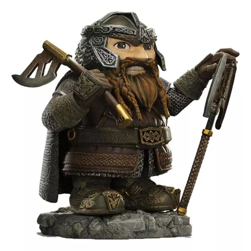Gruñón, orgulloso y cauteloso, pero también sensible y emotivo en el fondo, y siempre muy leal a sus amigos y aliados, el guerrero enano experto en el uso de hachas de batalla, apoya su hacha de mango corto sobre su hombro mientras sostiene en equilibrio una más grande. por sus pies. Dueño de una gran fuerza, capaz de luchar y derrotar por sí solo a muchos Orcos y Uruk-Hai, su rivalidad competitiva y amistosa con su mejor amigo elfo siempre lo pone en situaciones divertidas. Ampliando su estilizada línea MiniCo inspirada en la obra maestra creada por J. R. R. Tolkien y magistralmente adaptada a la pantalla grande en la trilogía cinematográfica dirigida por Peter Jackson, Iron Studios presenta con orgullo la estatua "Gimli - El Señor de los Anillos - MiniCo", con el respetado guerrero enano del pueblo Durin que se ofreció como voluntario para la Comunidad del Anillo en el viaje para destruir el Anillo Único de Sauron. Gimli, hijo de Glóin, fue el único enano que luchó fácilmente junto a los elfos en la guerra contra Sauron al final de la Tercera Era. Gimli también se convirtió en el mejor amigo de Legolas y se enamoró de la reina élfica Galadriel, lo que contribuyó a restablecer la amistad entre ambas especies. Gimli muestra toda su furia en el combate en las Minas de Moria cuando descubre que su pueblo fue asesinado por los Orcos.