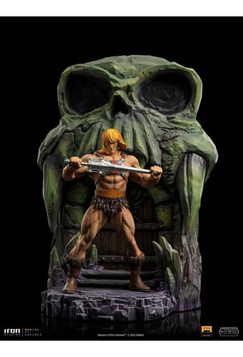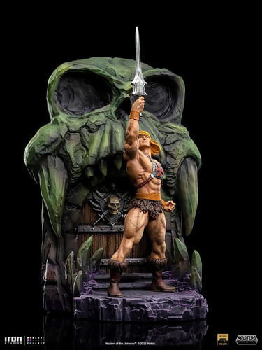 En el lejano planeta Eternia, en el centro del universo, frente a un místico castillo secular con la entrada en forma de calavera, un guerrero musculoso de piel bronceada y largo cabello dorado levanta su mágica Espada de Poder, proclamando su mantra, llamando desciende rayos y rayos de energía pura que lo transforman en el hombre más poderoso del universo. Al pronunciar las palabras “Por el poder de Grayskull…” el joven Príncipe Adam se transforma y afirma “¡… tengo el poder!” mientras adquiere la forma de un bárbaro gigante y se convierte en el héroe defensor de los secretos del Castillo Grayskull. Una de las estatuas más esperadas por fanáticos y coleccionistas desde el anuncio del lanzamiento de su línea MOTU, Iron Studios presenta con orgullo "He-Man Deluxe - Masters of the Universe - Art Scale 1/10", con el icónico héroe protagonista de Masters. del Universo replicando su inconfundible escena de transformación en un pedestal estilizado de la puerta de Grayskull.