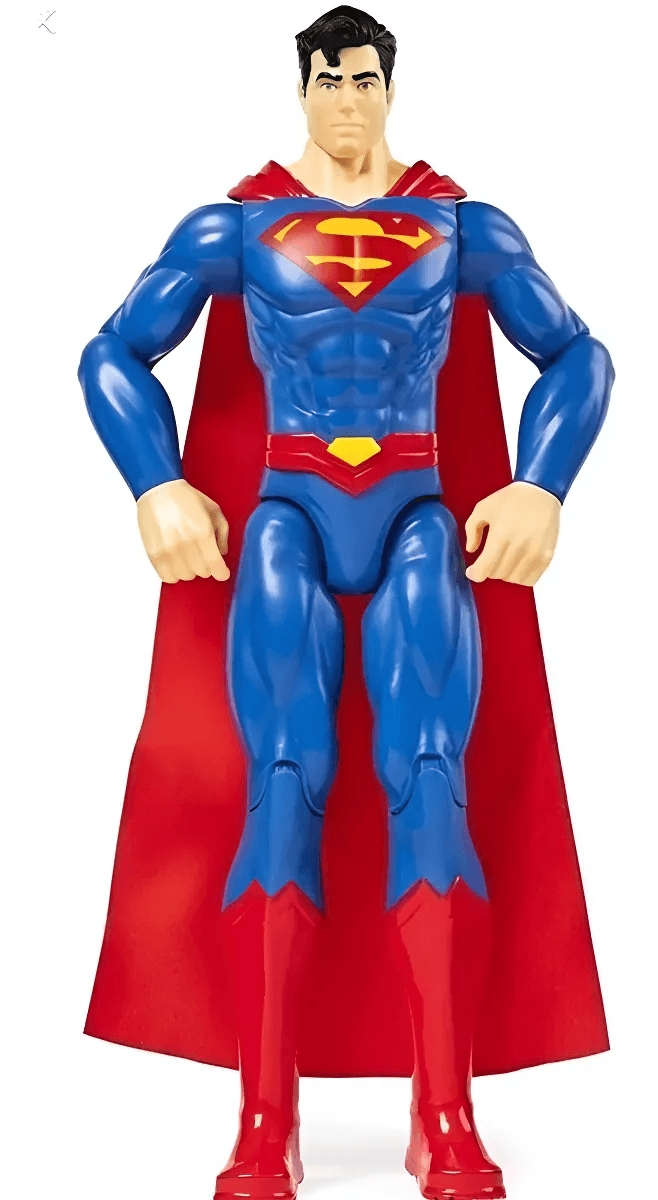 Esta figura articulada de Superman de 30 cm presenta su traje clásico con capa, ideal para recrear aventuras y batallas épicas.