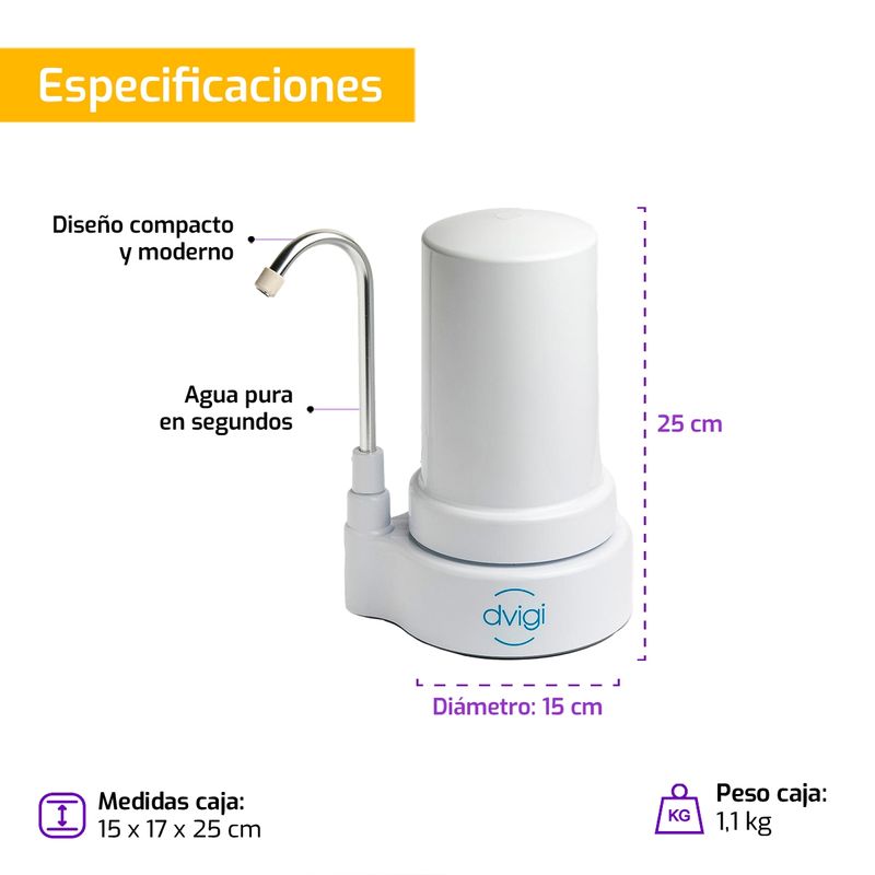 Diseñado para brindar agua purificada en cuestión de segundos, este purificador sobre mesada se integra perfectamente en la vida cotidiana. Olvídate de preocupaciones sobre la calidad del agua que consume y disfruta de la comodidad de un suministro seguro para toda la familia.