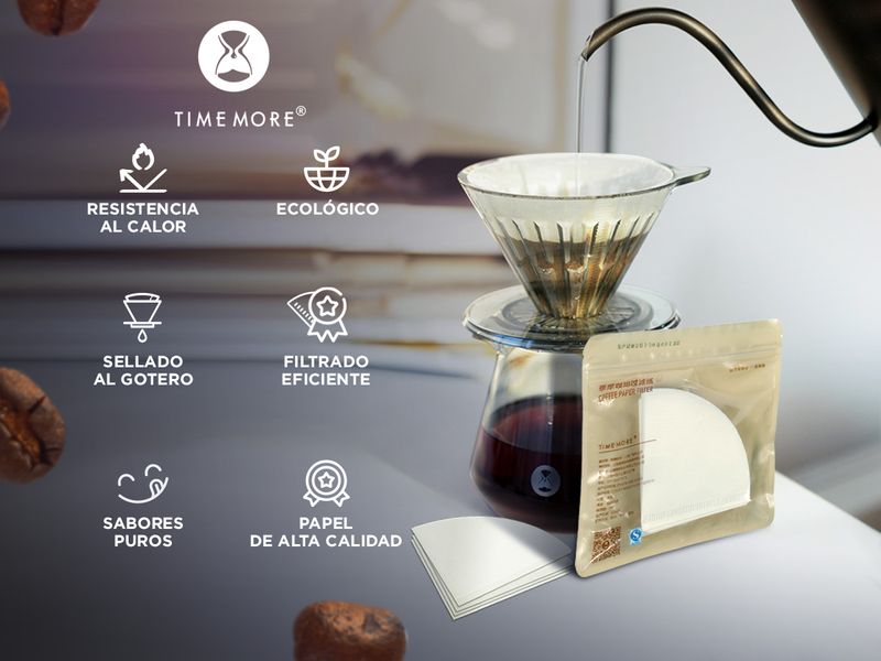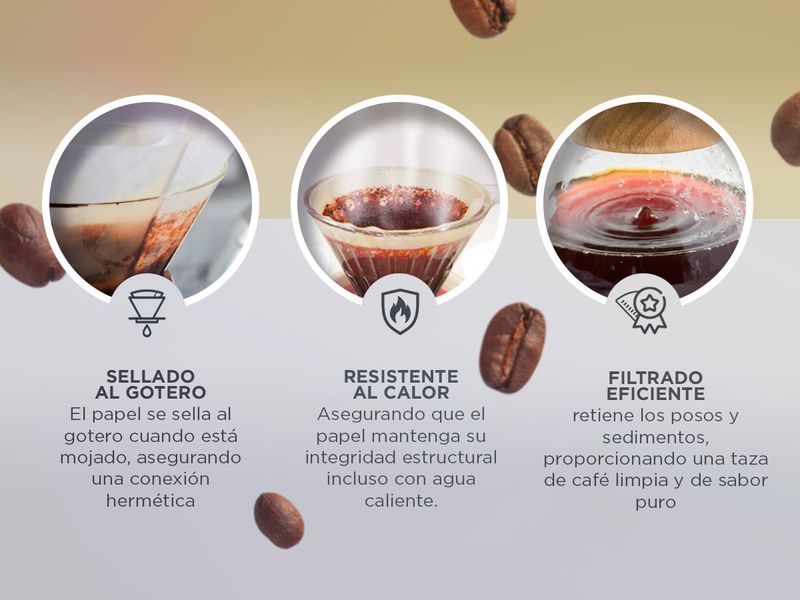 La resistencia al calor es una característica fundamental, asegurando que el papel mantenga su integridad estructural incluso con agua caliente. Esto se traduce en un desempeño consistente en cada preparación, garantizando que cada taza sea una experiencia notable.