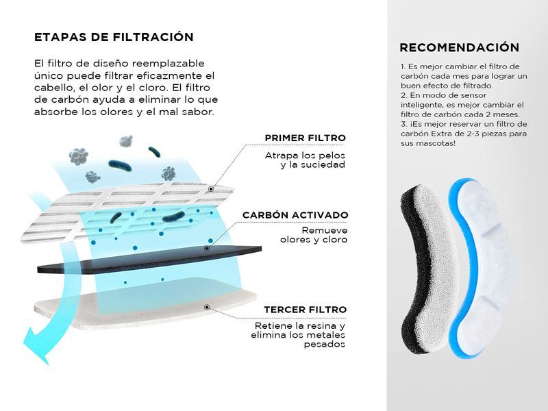 Estos filtros no solo mejoran la calidad del agua, sino que también son muy fáciles de instalar y reemplazar, garantizando una filtración continua y eficaz con el mínimo esfuerzo. Con nuestros filtros de alta tecnología, puedes estar seguro de que tu mascota recibirá agua de la mejor calidad, lo que contribuirá a su bienestar y longevidad.