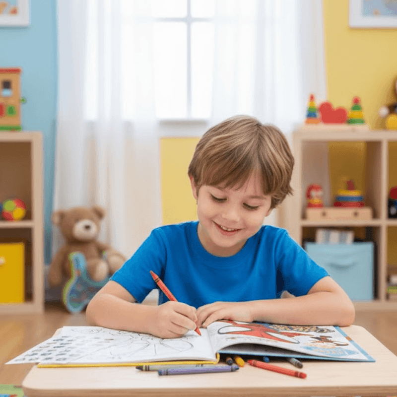 - Material: papel ilustrado + crayones infantiles + tatuajes temporales