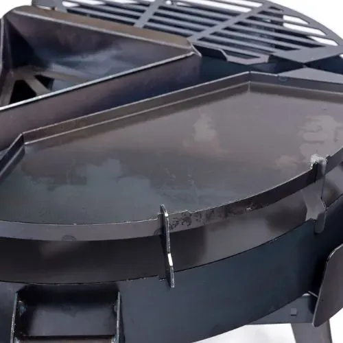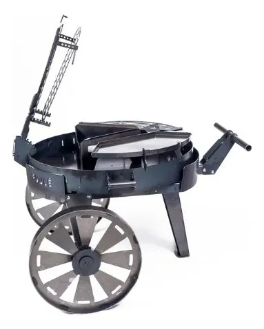 Asador versátil de cómodo tamaño con el carro accesorio exclusivo, para llevarlo fácilmente al ambiente que se necesite. Gracias a las asas de transporte que facilitan el movimiento del conjunto, y al sólido carro adaptable para discos de 80 cm de diámetro, este producto está diseñado para que lo traslades hasta donde más te guste. Reunite y disfrutá del fuego y la buena compañía con tu fogonero VULE.