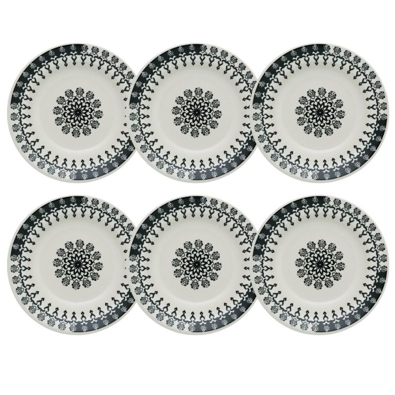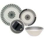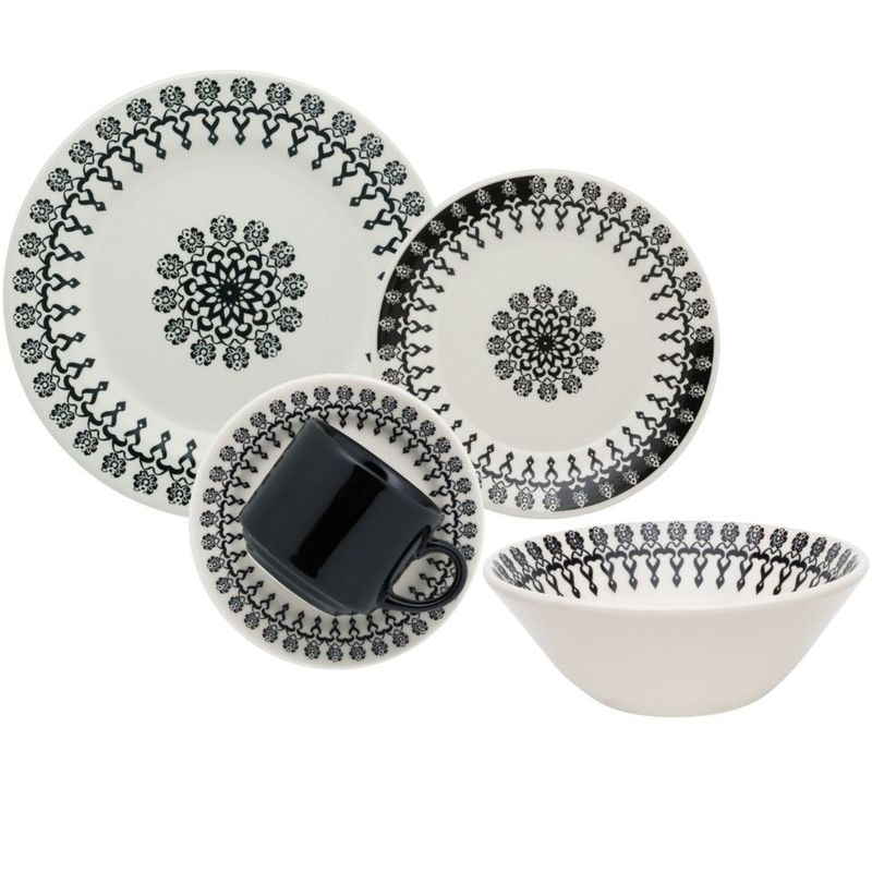 El color negro es basico y neutro, un autentico comodin a la hora de poner la mesa. En esta vajilla ponemos el color negro en un estampado mas alegre y jovial, perfecto para los que prefieren un formato de plato tradicional con una decoracion mas alegre. La copa negra, sin decoracion, crea una hermosa composicion con las demas piezas combinando elegancia y alegria en un solo juego!