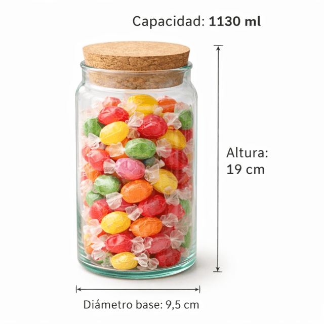 Medida : Altura con corcho : 19 cm , Diametro boca : 7,5 cm, Diametro base : 9,5 cm.