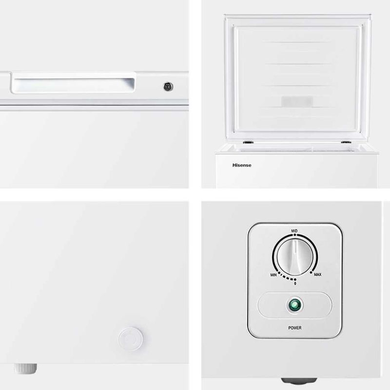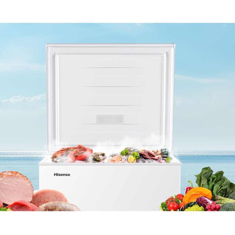 Conservá tus alimentos con el Freezer Horizontal Hisense 142L: bajo consumo, congelación rápida y frío hasta 135 hs sin energía. ¡Aprovechá su eficiencia!