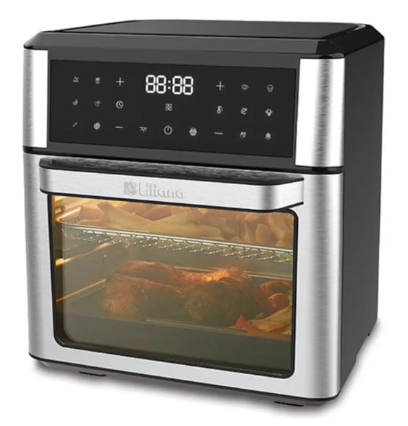 Horno y Freidora de Aire AirCook de Liliana, modelo AF950, la solución todo en uno para cocinar de manera saludable, rápida y eficiente en tu hogar! Con su tecnología de convección y panel digital con 11 programas predeterminados, este equipo te permite freír, hornear, asar y cocinar al vapor con hasta un 85% menos de aceite. Además, su diseño moderno con frente de acero inoxidable, doble vidrio y luz interior garantiza una cocción precisa y cómoda.