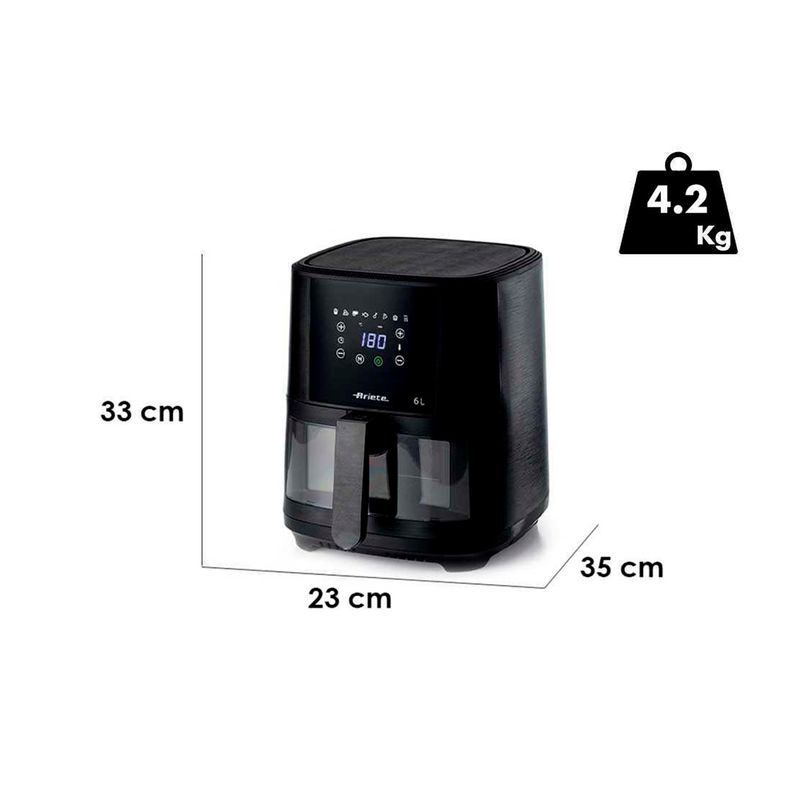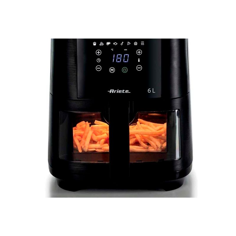 Modelo PA-FR4626NE-I: La freidora de aire 6L Ariete 4626 es ideal para aquellos que quieran preparar deliciosas y sanas comidas con el uso de una sola cucharada de aceite. Esta freidora, con una capacidad de 6 litros, permite cocinar a familias numerosas o a quienes les gusta recibir a amigos y familiares. La tecnología de aire caliente garantiza una cocción uniforme y crujiente, preservando el sabor natural de los alimentos.
