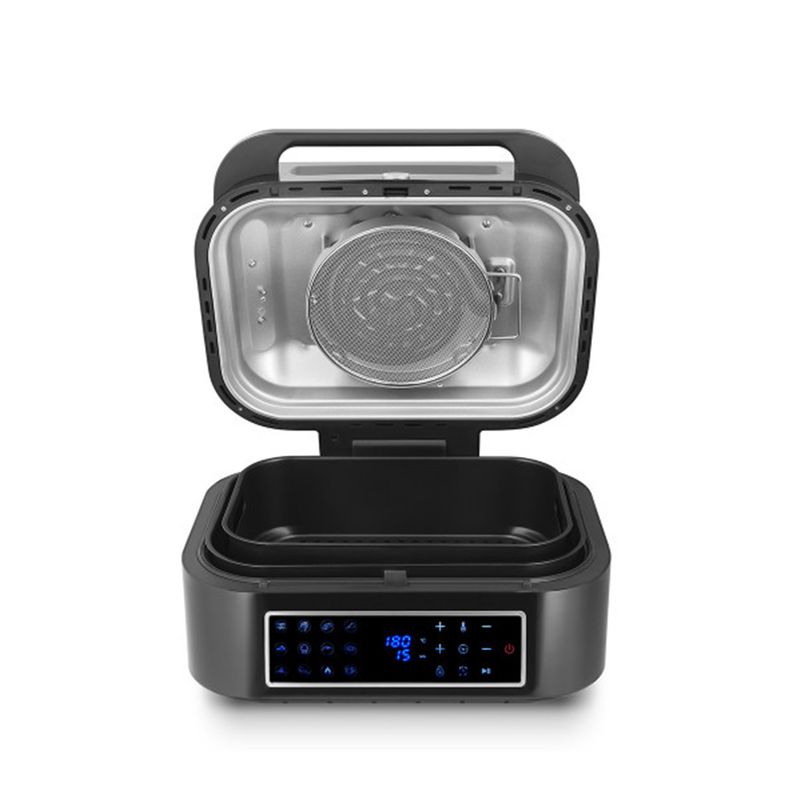 La Freidora De Aire Y Grill Digital 6.3 L Negro Atma es una solución moderna y eficiente para quienes buscan preparar comidas saludables y deliciosas en casa. Con una potencia de 1600W, esta freidora permite freír y asar con facilidad, utilizando la tecnología de circulación de aire caliente que reduce significativamente el uso de aceite.