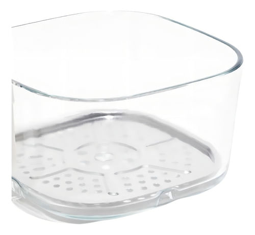 - Contenedor de vidrio templado que permite ver la cocción sin abrir y sin perder calor.