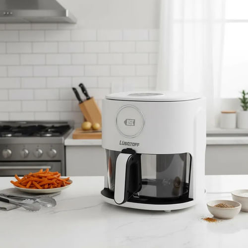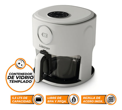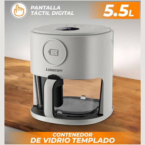 La freidora de aire Lusqtoff LQ-FA001 simplifica tu rutina en la cocina: práctica, fácil de usar y con capacidad de 5.5 litros para cocinar en una sola tanda para toda la familia. Disfrutá comidas más ricas y saludables con hasta un 99% menos de grasa, logrando pollo, papas, verduras, carnes y mucho más con resultados crocantes y sabrosos en pocos minutos. Su diseño moderno con contenedor de vidrio templado no solo aporta estilo, también te permite ver la cocción sin interrumpir el proceso.