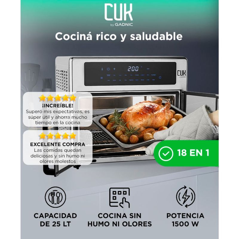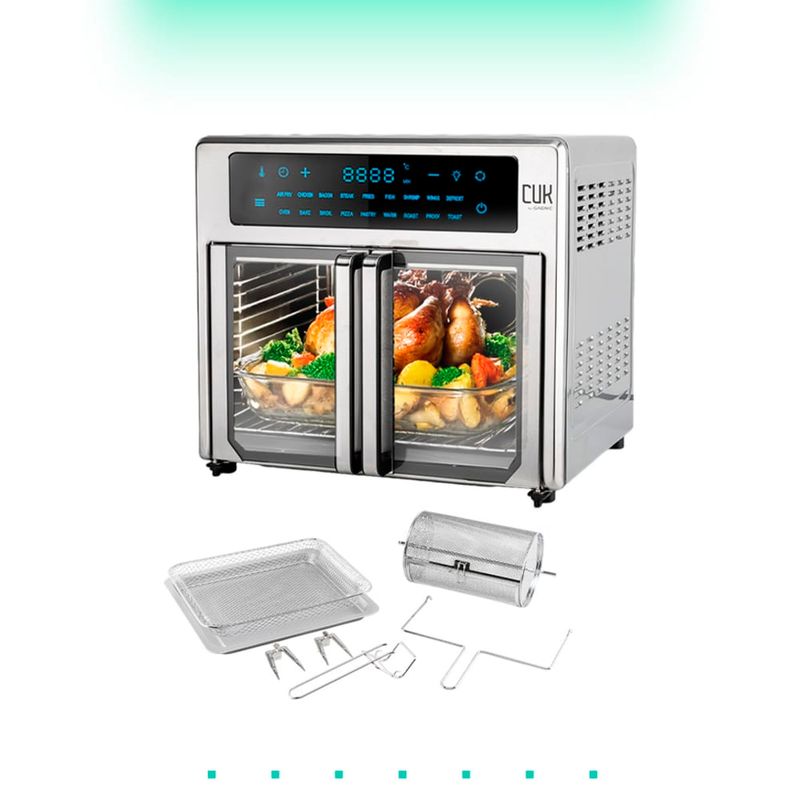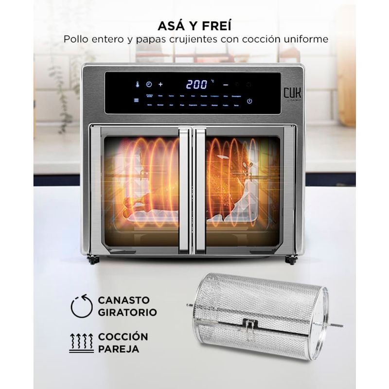 Cociná porciones familiares en una sola tanda. Ideal para pollo, pizzas, papas y más sin complicaciones.
