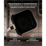 La función de mantenimiento del calor te permite conservar tus creaciones a la temperatura ideal hasta que estés listo para servir, garantizando comidas calientes y deliciosas en cualquier momento. Además, la limpieza es sencilla gracias a la capa antiadherente y la canasta desmontable apta para lavavajillas.