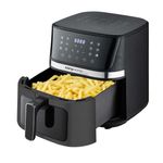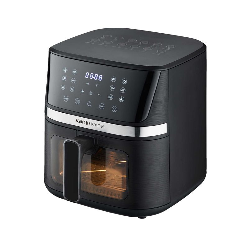 Freidora de Aire Kanji 8 L KJH‑1700DC es una freidora de aire de gran capacidad ideal para cocinar de forma saludable y práctica para toda la familia, con 8 litros y 1700 W de potencia que permiten un calentamiento rápido y eficiente. Cuenta con control digital, pantalla LED, 12 funciones automáticas preestablecidas, regulador de temperatura de 80 °C a 200 °C, apagado automático, y sin humo ni olores durante la cocción, además de una cesta con visor para monitorear tus recetas mientras se cocinan. Su diseño de acero inoxidable facilita la limpieza y ofrece durabilidad, con 2 años de garantía incluida.