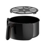 Con un diseño moderno en color negro, esta freidora de aire se adapta perfectamente a cualquier estilo de cocina, convirtiéndose en un electrodoméstico práctico y eficiente para el día a día.