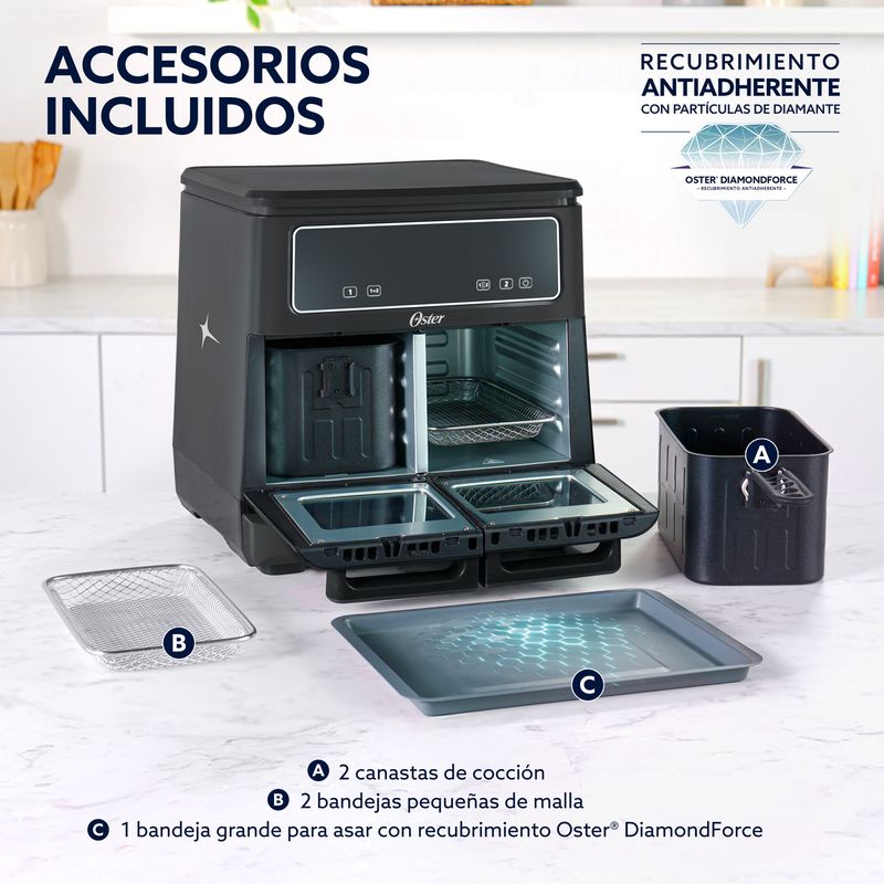 Freidora de Aire Oster Flex 11 L con 2 Zonas de Cocción Independientes – CKSTAF11MCDDF-054