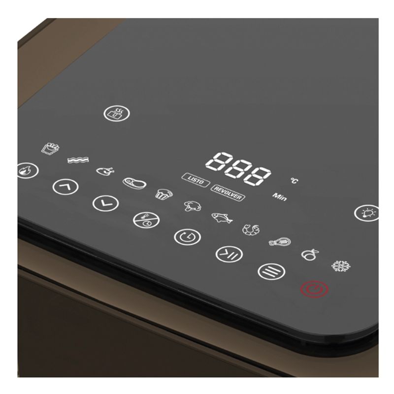 Display LED touch y alarma sonora al finalizar la cocción.