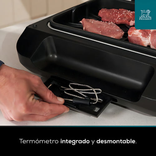 • Termómetro inteligente de doble sensor para un control exacto del punto de cocción interno, asegurando que tus comidas alcancen la perfección.