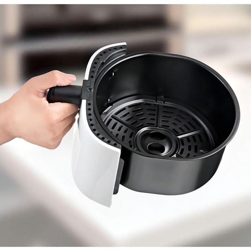 Con una potencia de 1400W y un rango de temperatura que va desde 80 °C hasta 200 °C, esta freidora ofrece versatilidad en la cocina. Puedes freír, asar o recalentar tus alimentos con facilidad, gracias a su control de temperatura y temporizador analógico. La superficie antiadherente asegura que la limpieza sea rápida y sencilla, permitiéndote disfrutar más tiempo de tus platillos.