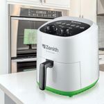La Freidora de Aire sin Aceite Zenith Z-Fryer 3.6L es la solución ideal para quienes buscan una forma más saludable de disfrutar sus comidas favoritas. Con una capacidad de 3.6 litros, permite preparar porciones generosas, perfectas para familias o reuniones. Su diseño en blanco y verde no solo es atractivo, sino que también se adapta a cualquier cocina moderna.