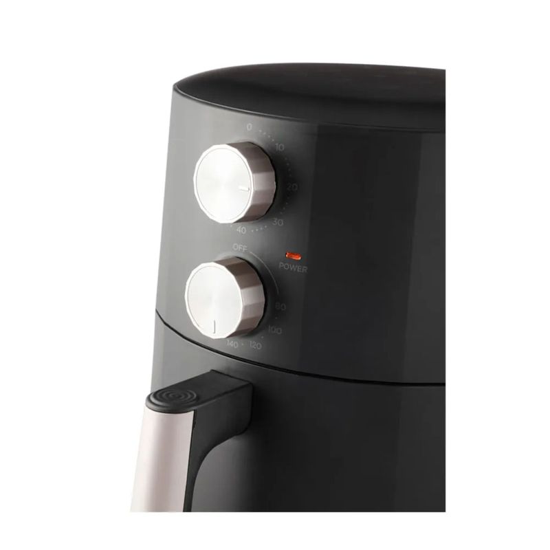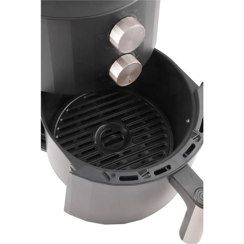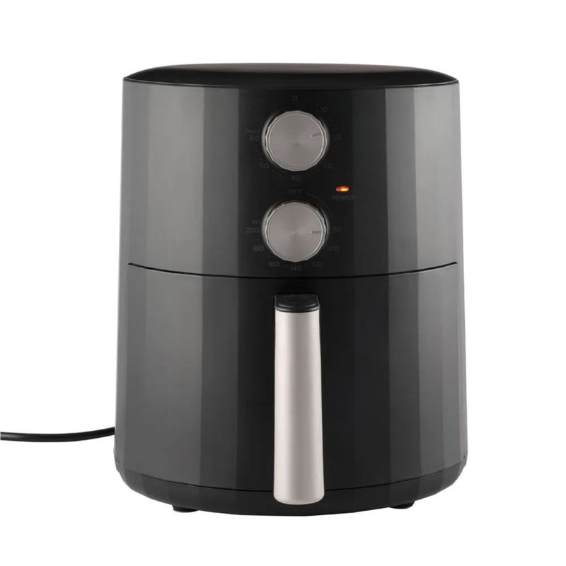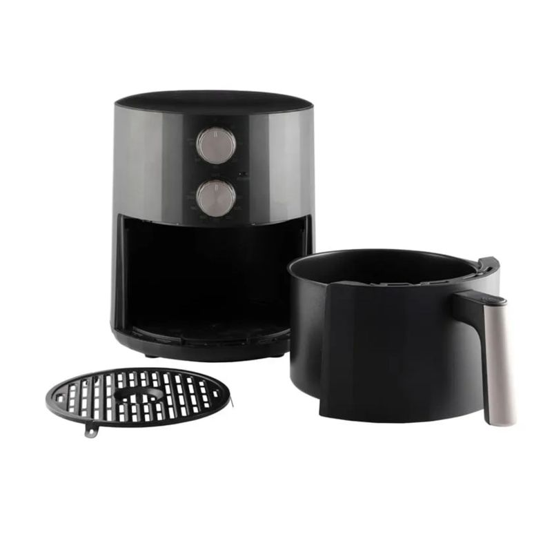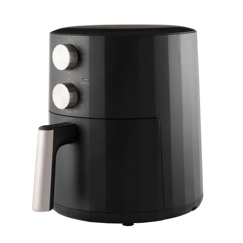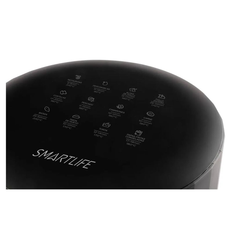 Freidora Smartlife Manual de Capacidad 5L Descubre una experiencia de cocina moderna y saludable con la freidora Smartlife, diseñada para simplificar tus preparaciones y ofrecerte resultados perfectos en cada uso. Características principales Panel de control analógico: Con temporizador de hasta 60 minutos y apagado automático para mayor seguridad. Gran capacidad: Su canasto de 4.2L es ideal para preparar porciones grandes, perfecto para familias o reuniones. Material premium: Canasto desmontable con revestimiento antiadherente, apto para lavavajillas, lo que facilita su limpieza. Mango resistente al calor: Manipula el canasto con total seguridad. Tecnología avanzada Esta freidora no solo fríe, sino que también hornea y gratina. Además, puedes ajustar la temperatura entre 80°C y 200°C, adaptándola a cualquier receta. Esta freidora combina funcionalidad, diseño moderno y facilidad de uso, siendo una solución versátil para tus necesidades culinarias. ¡Hazla parte de tu cocina y disfruta de comidas deliciosas y saludables con menos esfuerzo!
