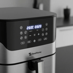 Equipado con 10 programas preestablecidos, su control digital y pantalla táctil facilitan la selección de la temperatura y el tiempo de cocción. La temperatura se puede ajustar entre 80 °C y 200 °C, lo que brinda versatilidad para cocinar una amplia variedad de alimentos, desde snacks hasta platos principales.