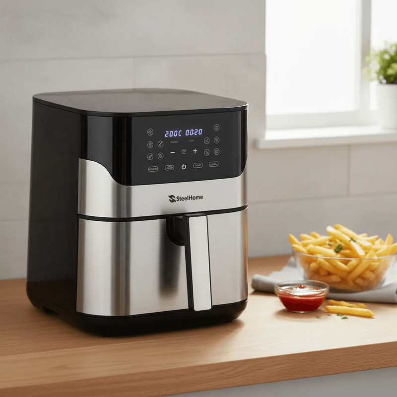 La Freidora de Aire Steel Home RA-AF8L no solo es eficiente en su funcionamiento, sino que también promueve un estilo de vida más saludable. Descubre la forma más práctica y sabrosa de cocinar, y transforma tus hábitos alimenticios con esta innovadora freidora de aire.