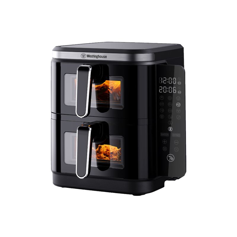 La freidora de aire Westinghouse Digital WKAF-2201 está diseñada para transformar tu forma de cocinar, combinando practicidad, potencia y resultados deliciosos. Incluye dos canastos independientes que te permiten preparar diferentes comidas al mismo tiempo sin mezclar sabores. Su tecnología de aire caliente garantiza una cocción pareja y crocante, sin necesidad de aceite, logrando platos más saludables y sabrosos. Además, cuenta con control digital táctil, 12 menús automáticos, temperatura ajustable hasta 200°C y recubrimiento antiadherente que facilita la limpieza. Con 2200 W de potencia, esta freidora ofrece eficiencia, rapidez y resultados perfectos en cada preparación.