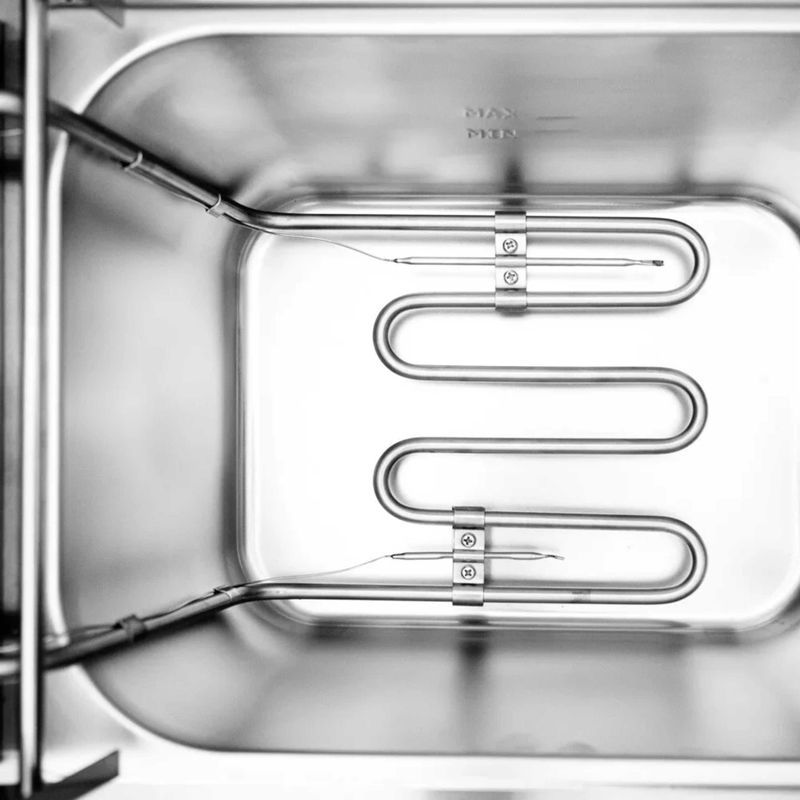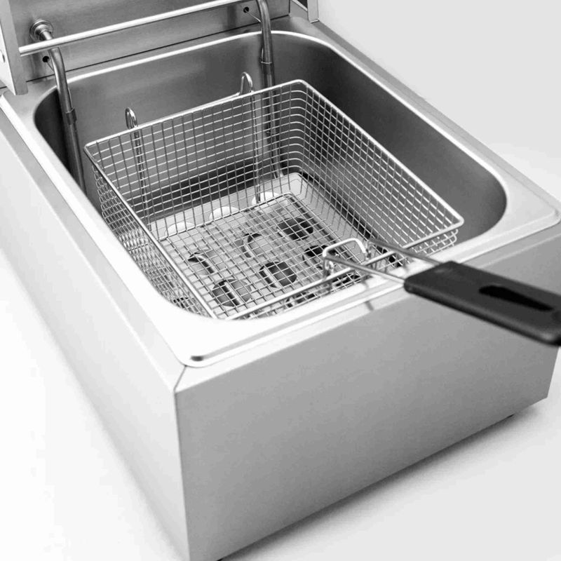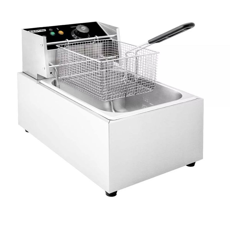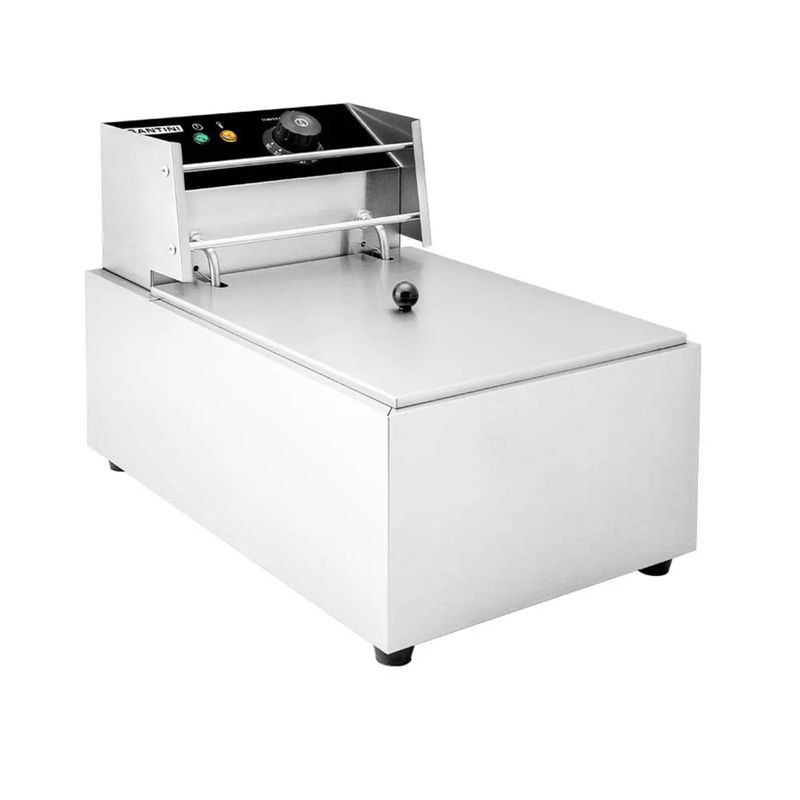 Es una freidora eléctrica de 6 litros de capacidad con potencia de 2.500 W, pensada especialmente para uso comercial e industrial, ideal para cocinas de restaurantes, food trucks o negocios gastronómicos que requieren freír grandes porciones de alimentos de forma rápida y uniforme. Con estructura 100 % en acero inoxidable resistente y fácil de limpiar, cuenta con canasto freidor removible, control de temperatura regulable (hasta ~190 °C–200 °C), indicadores de encendido y calentamiento y protector contra sobrecalentamiento para mayor seguridad y durabilidad en el trabajo diario.