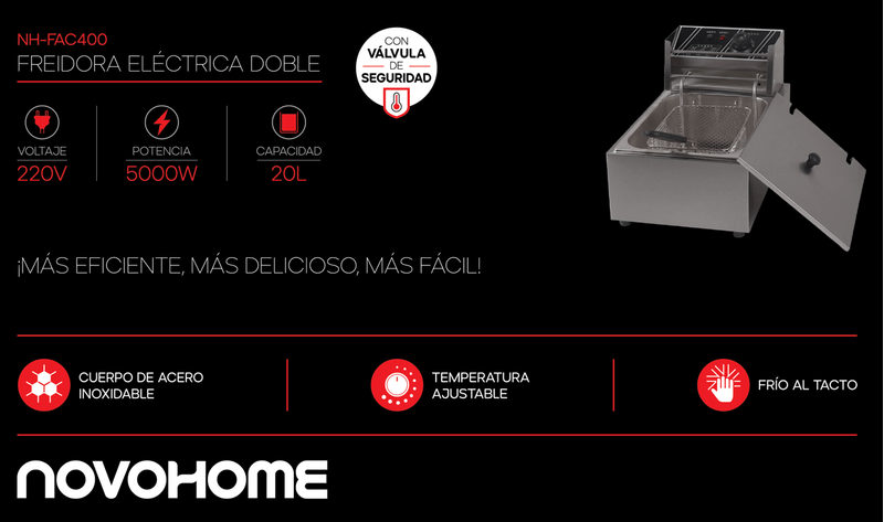 NOVOHOME FREIDORA DE ACEITE 20 LTS DOBLE CANASTO - 5000W