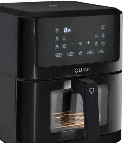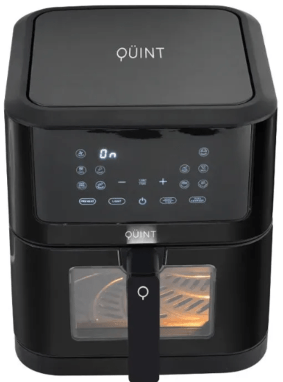 Esta freidora de aire digital de la marca QÜINT combina un diseño moderno en color negro con una generosa capacidad de 6 litros, ideal para satisfacer las necesidades de una familia mediana. Gracias a su avanzada tecnología de circulación de aire caliente a alta velocidad, permite obtener texturas crujientes y sabores intensos utilizando hasta un 80% menos de aceite. Su panel LED táctil facilita la selección de funciones preprogramadas, asegurando resultados precisos en cada preparación. Además, cuenta con una ventana transparente y luz interior que permiten monitorear la cocción sin necesidad de abrir el cajón y perder calor