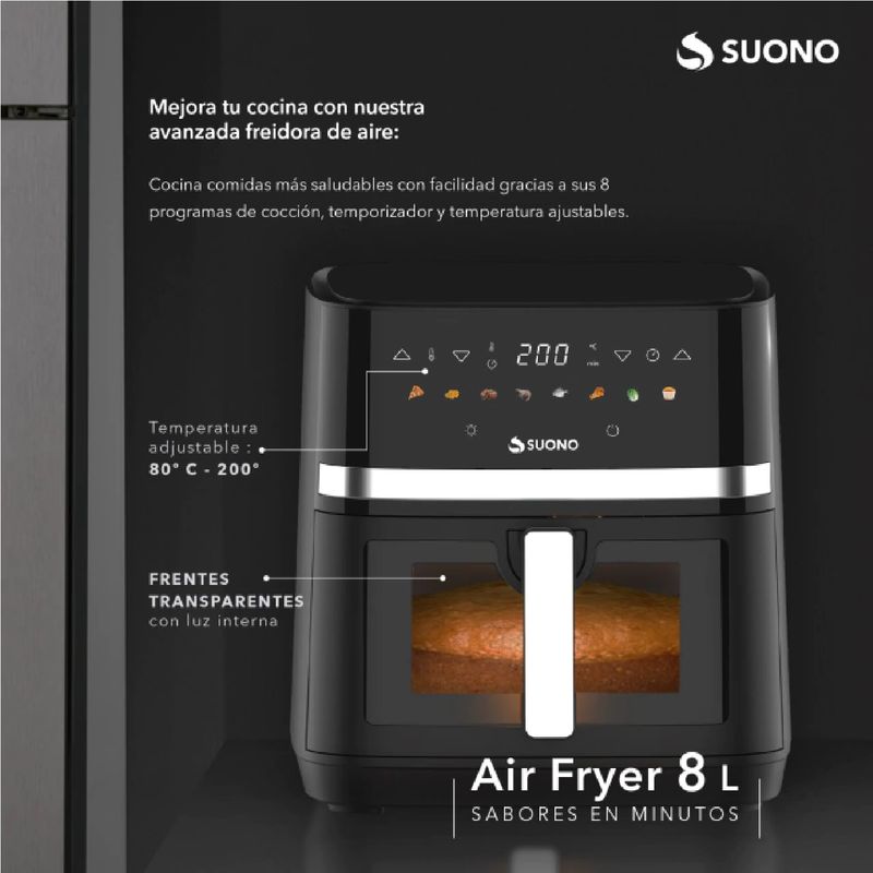Freidora de Aire Suono Digital con Ventana 8L y 1800W: Cocina Saludable y con Mayor Capacidad