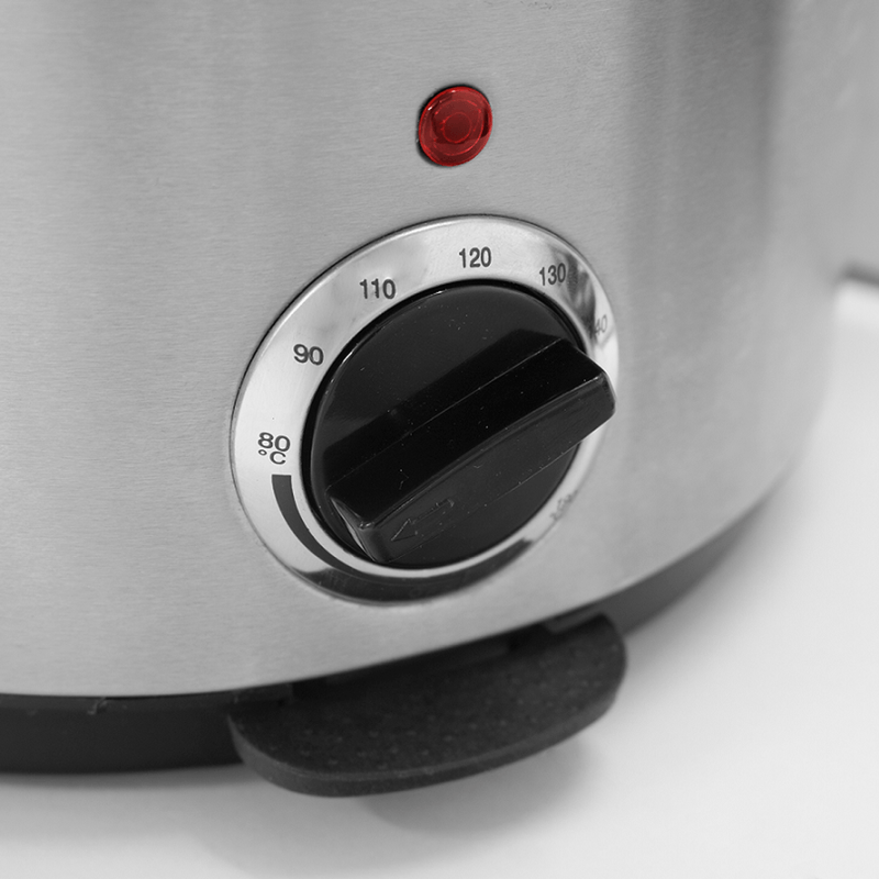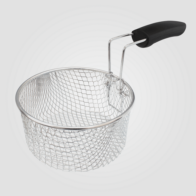 Su mando selector de temperatura te permite ajustar el calor según el tipo de alimento, mientras que la luz indicadora señala cuándo está lista para cocinar. Incluye una cesta metálica con mango desmontable, que facilita tanto la fritura como el escurrido y la limpieza.