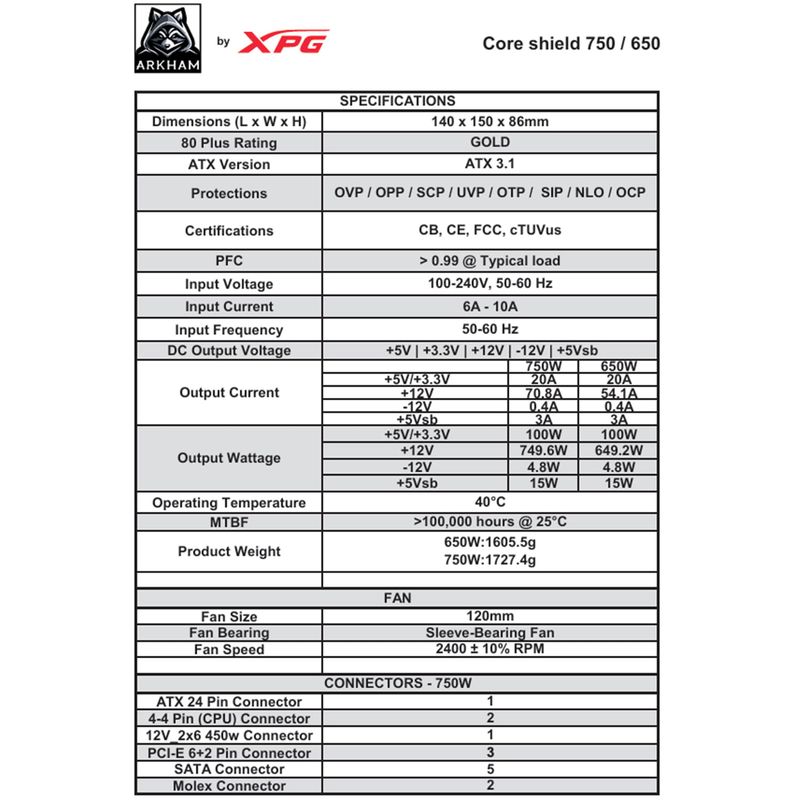 FUENTE OEM ARKHAM CERTIFICADA Y FABRICADA JUNTO A XPG