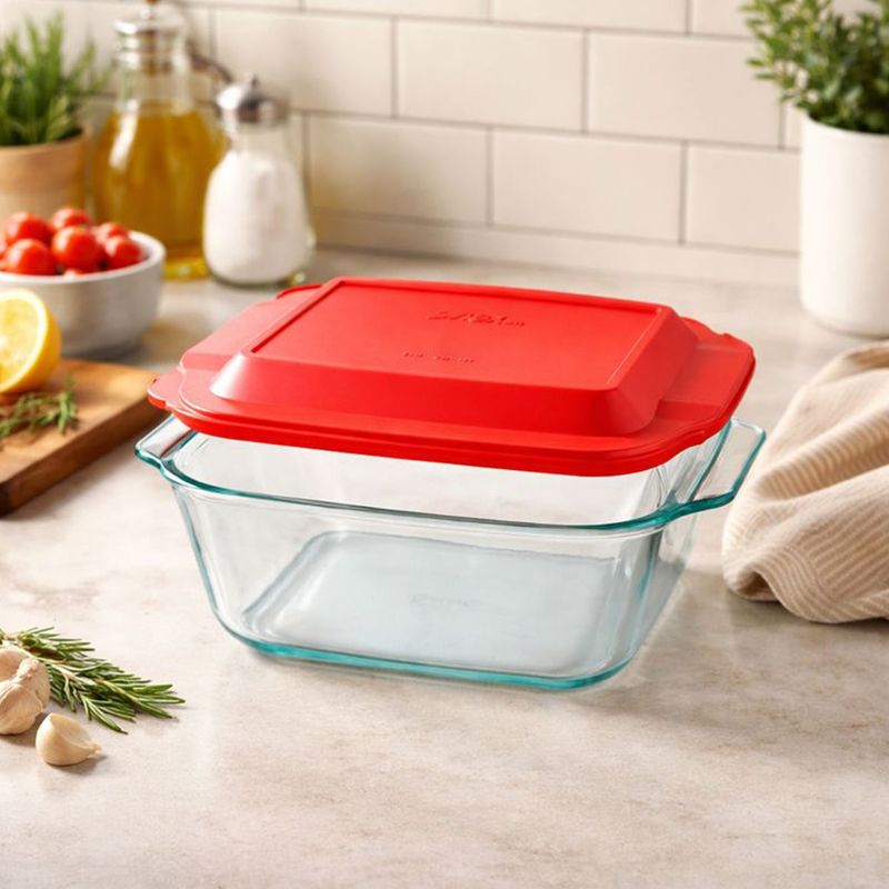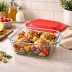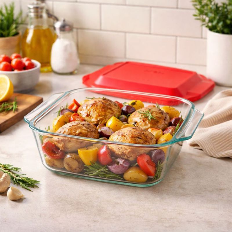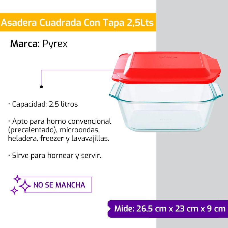 Fuente Molde Asadera Cuadrada Vidrio Pyrex Con Tapa