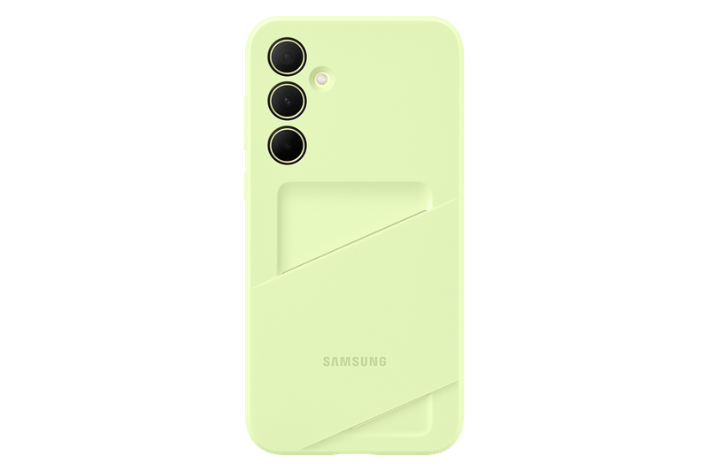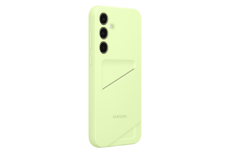 La funda Card Slot Case para Galaxy A35 5G está fabricada con material TPU*, que añade un extra de protección contra los arañazos o las caídas diarias. Además, es flexible, para que puedas ponerla y quitarla sin esfuerzos. Está disponible en estos colores: Negro y Lima.