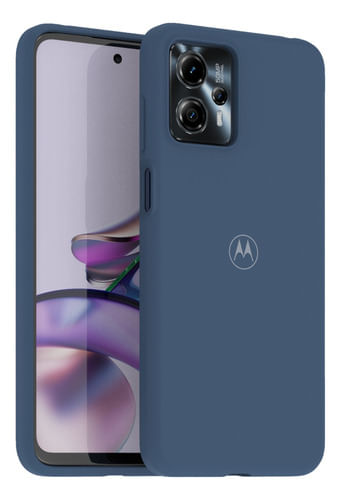 Protege tu Motorola G13 con esta funda protectora de silicona en color azul, diseñada especialmente para este modelo. La funda pertenece a la línea de accesorios Motorola, garantizando calidad y compatibilidad perfecta. Su material exterior de silicona brinda una protección adicional contra golpes y caídas, manteniendo tu celular seguro en todo momento.