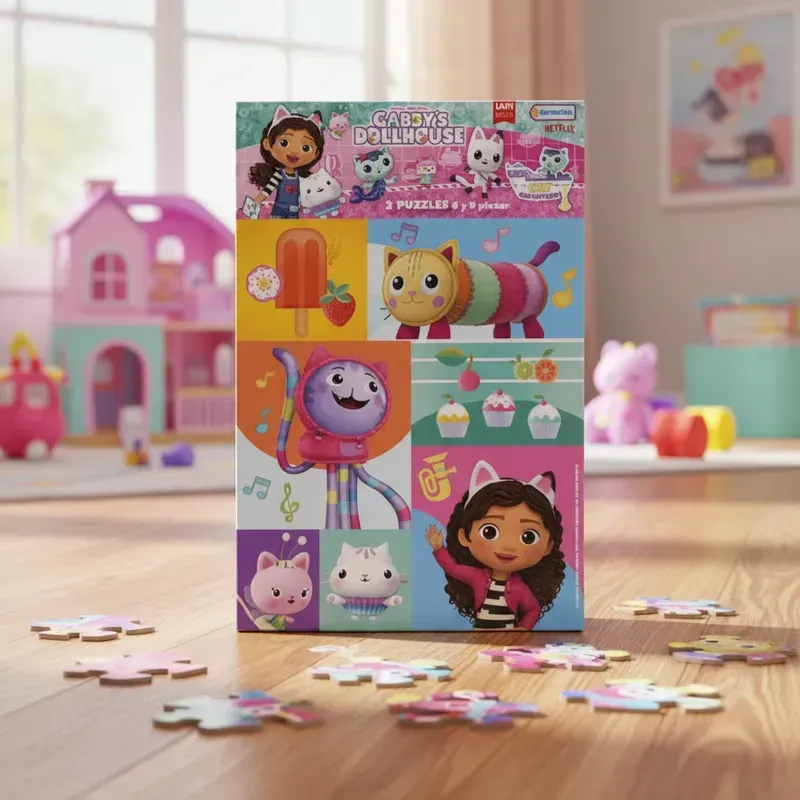 El tamaño armado es de 18x15 cm y cuenta con licencia oficial de Gabby's Dollhouse.