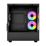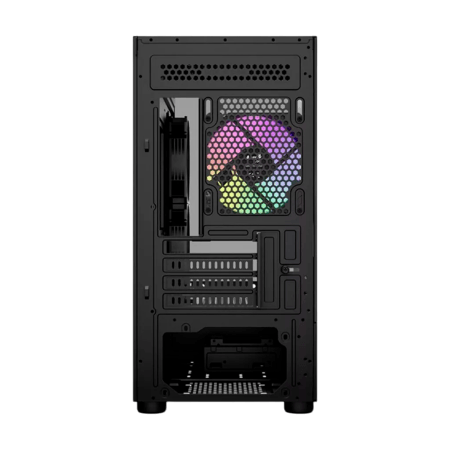 Diseñado con un enfoque en el flujo de aire optimizado, este chasis negro permite la instalación de hasta 7 ventiladores o radiadores de refrigeración líquida de hasta 280 mm. Es compatible con tarjetas gráficas de alto rendimiento de hasta 355 mm y coolers de CPU de hasta 165 mm, demostrando que el tamaño compacto no compromete la potencia.
