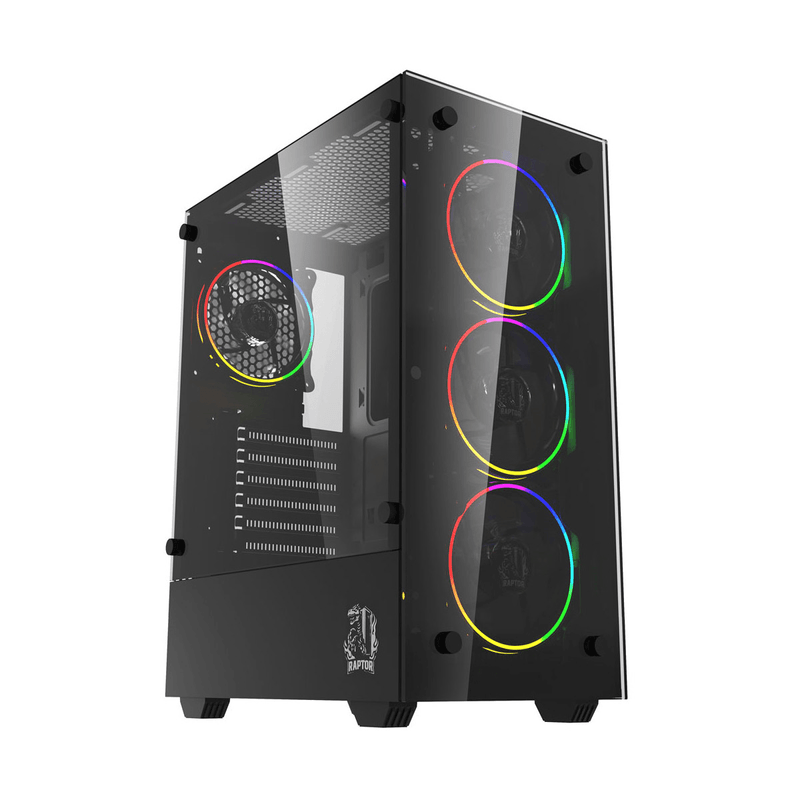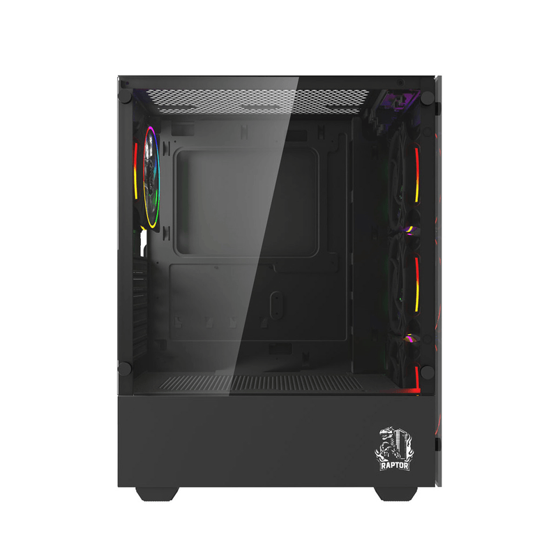 El Gabinete Raptor Sentinel TG es un gabinete mid tower diseñado para gamers que buscan estilo y funcionalidad. Con panel lateral de vidrio templado y 4 ventiladores RGB incluidos, ofrece una excelente refrigeración y apariencia visual impactante.